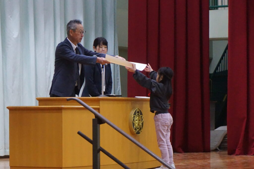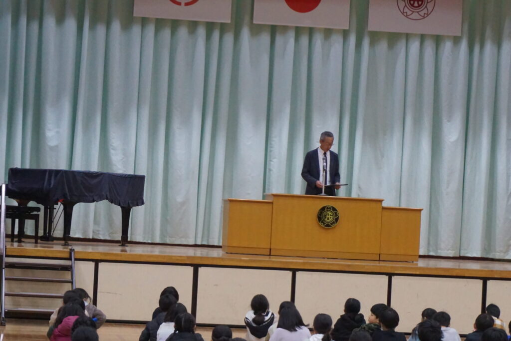 後期前半終了式 2025年12月24日 最終更新日時 : 2025年12月24日 kumagaya_author 本日、後期前半終了式を行いました。 表彰の後、冬休みの生活についてと校長先生からお話をいただきました。 今年一年、ご協力いただきありがとうございました。よいお年をお迎えください。