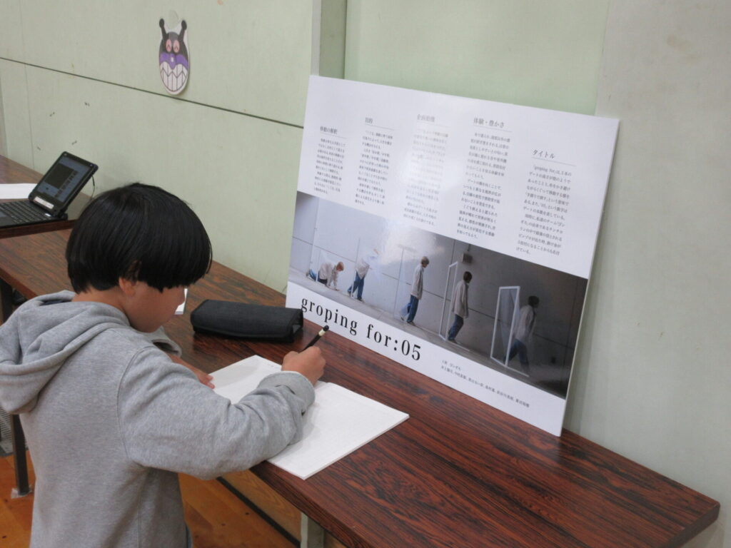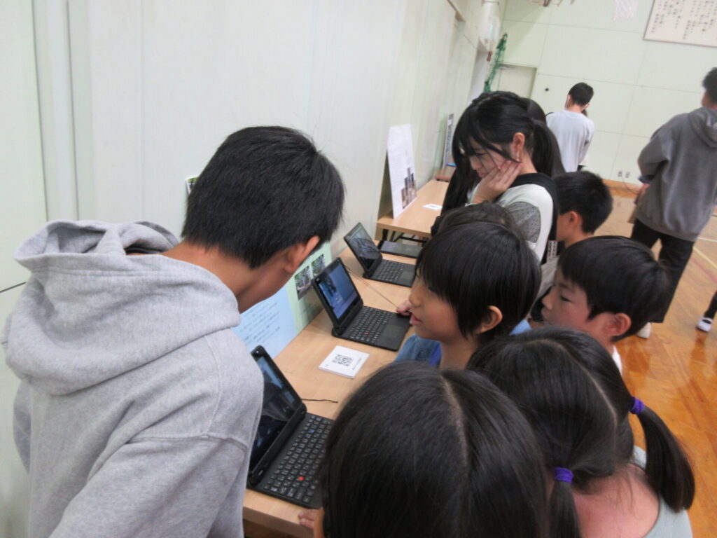 『テーマ「移動」』としてデザインした装置を紹介する動画を、児童も夢中になって視聴していました。