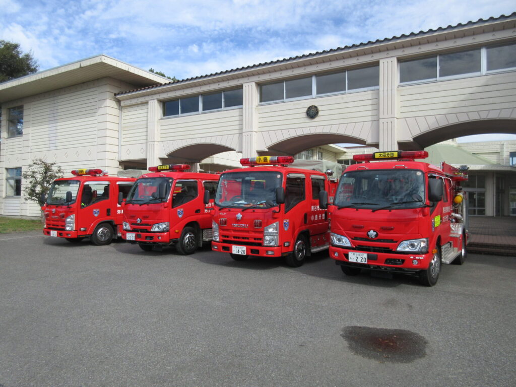 太田・男沼・小島・弥藤吾の消防団さんのご協力で、消防車が4台来校!消防体験を行い、消防車にも乗せていただきました。