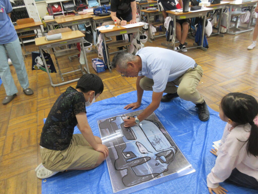 作成日は、リードの社員の方々も見学に来てくださり、子供たちが熊谷(妻沼地域)にゆかりのある絵を楽しく作成しました。